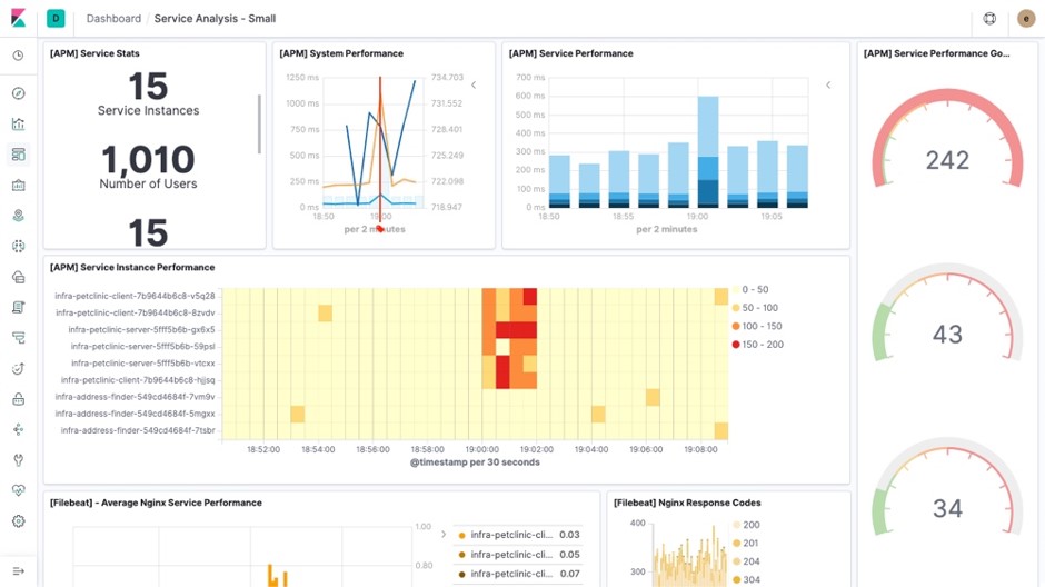 借助維度、標(biāo)簽、基數(shù)和字段隨心所欲地運(yùn)行。Elastic 不會(huì)限制或規(guī)定您瀏覽數(shù)據(jù)的方式。相反,您可以按自己喜歡的任何方式和順序,在您喜歡的可視化圖形中連續(xù)、快速、大規(guī)模地瀏覽屬性(主機(jī)名稱(chēng)、IP 地址、標(biāo)簽)。不僅如此,Beats 和相應(yīng)的模塊能夠?yàn)槟瓿墒占?、解析和?biāo)記工作。它們還能創(chuàng)建儀表板和 Machine Learning 任務(wù)。