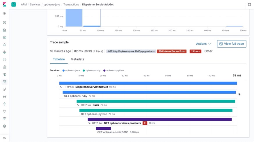 從 Kibana 中的 APM 應(yīng)用直接創(chuàng)建任務(wù)。通過(guò) Machine Learning 功能(此功能可自動(dòng)對(duì)您的數(shù)據(jù)建模)查找異常行為和存在問(wèn)題的部分。