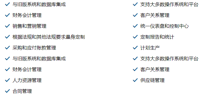 從奧軟件公司提供的ERP系統(tǒng)軟件主要面向中小企業(yè),包括ERP財務管理、CRM客戶關系管理、SCM供應鏈管理、eHR人力資源管理、制造生產(chǎn)和及庫存管理等核心模塊功能,同時系統(tǒng)功能支持多語言,可以對集團公司導入實施,提供多帳套功能。軟件使用JAVA語言開發(fā),支持Oracle、Postgresql等主流數(shù)據(jù)庫。
