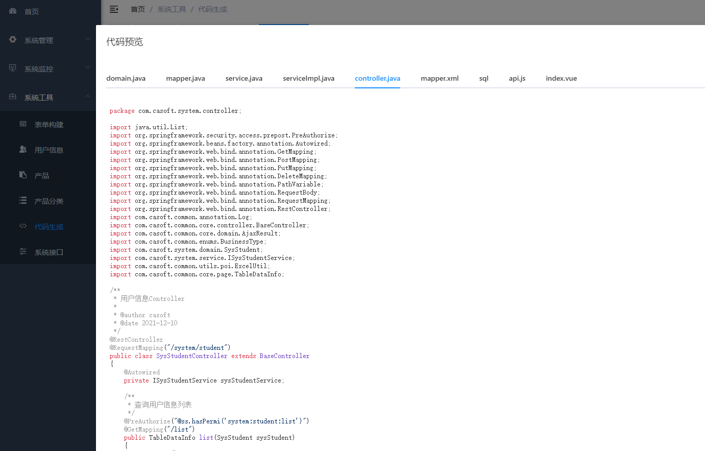 前后端代碼生成