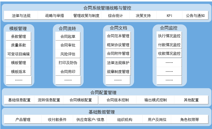 針對合同基本信息、審查管理、范本管理、履行管理、變更管理等,形成公司合同信息庫和合同主體庫(對于供應商,整合采購管理中的供應商管理模塊;對于客戶,形成客戶管理模塊;對于合作伙伴,形成合作伙伴管理模塊),使公司經審批簽署的合同納入統(tǒng)一登記管理。對公司合同承辦、審查、歸檔、蓋章、履行等操作的人員根據不同的工作分工建立分級查詢、修改、刪除等操作權限。在系統(tǒng)中實現(xiàn)對合同管理流程的自動流轉、數(shù)據關聯(lián)、信息檢索、統(tǒng)計分析、過程監(jiān)控等功能。