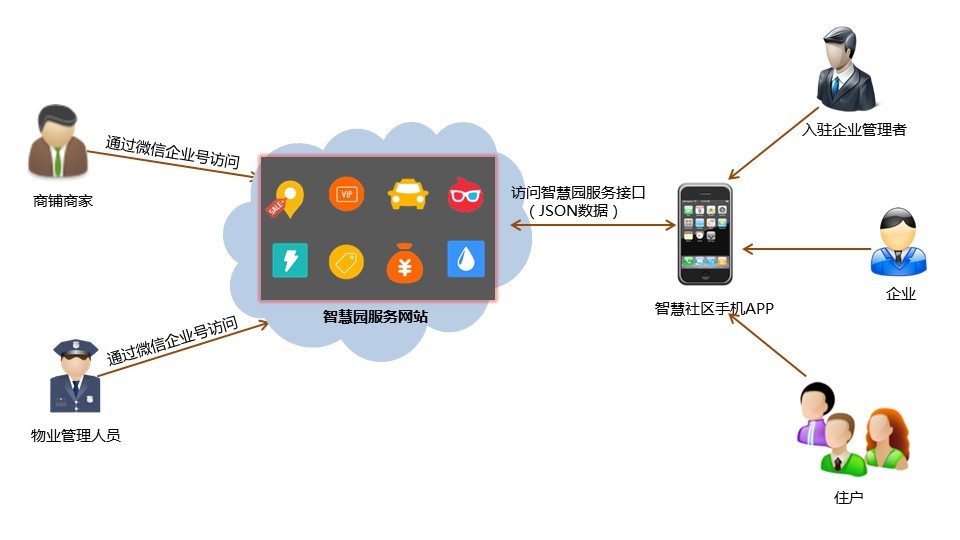 智慧園門戶網(wǎng)站,官網(wǎng)Web頁面采用響應(yīng)式設(shè)計(jì),客戶可以通過PC端的IE8.0以及更高的版本、Chrome、Firefox、Safari、Opera或者平板電腦、智能手機(jī)瀏覽器來瀏覽園區(qū)門戶官網(wǎng)。智慧園運(yùn)營管理平臺,運(yùn)營管理平臺采用Java 開發(fā),MySQL數(shù)據(jù)庫。支持在Windows或Mac等不同PC操作系統(tǒng)的瀏覽器上運(yùn)行。兼容主流桌面瀏覽器:IE8.0以上、Firefox、Chrome、Safari等最新版本。開通微信公眾號企業(yè)號,開發(fā)運(yùn)營管理平臺和微信企業(yè)號的接口。將所有內(nèi)部管理人員及工作人員的移動作業(yè)及流程響應(yīng)接口轉(zhuǎn)移到微信企業(yè)號中,實(shí)現(xiàn)移動化辦公。