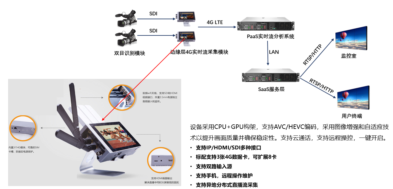 設(shè)備采用CPU+GPU構(gòu)架,支持AVC/HEVC編碼,采用圖像增強(qiáng)和自適應(yīng)技術(shù)以提升畫面質(zhì)量并確保穩(wěn)定性。支持云通話,支持遠(yuǎn)程操控,一鍵開啟。